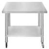 Catering Work Bench Table Stainless Steel Food Prep Kitchen Mobile 4 x Castor Wheels With 2 Brakes & 4 Adaptable Feet Adjustable Lower Shelf 3 Positions 160kg Load Capacity 76cm x 90cm x 86cm Description:Enhance the functionality of your commercial kitchen with this highly durable 76cm x 90cm x 86cm prep table.